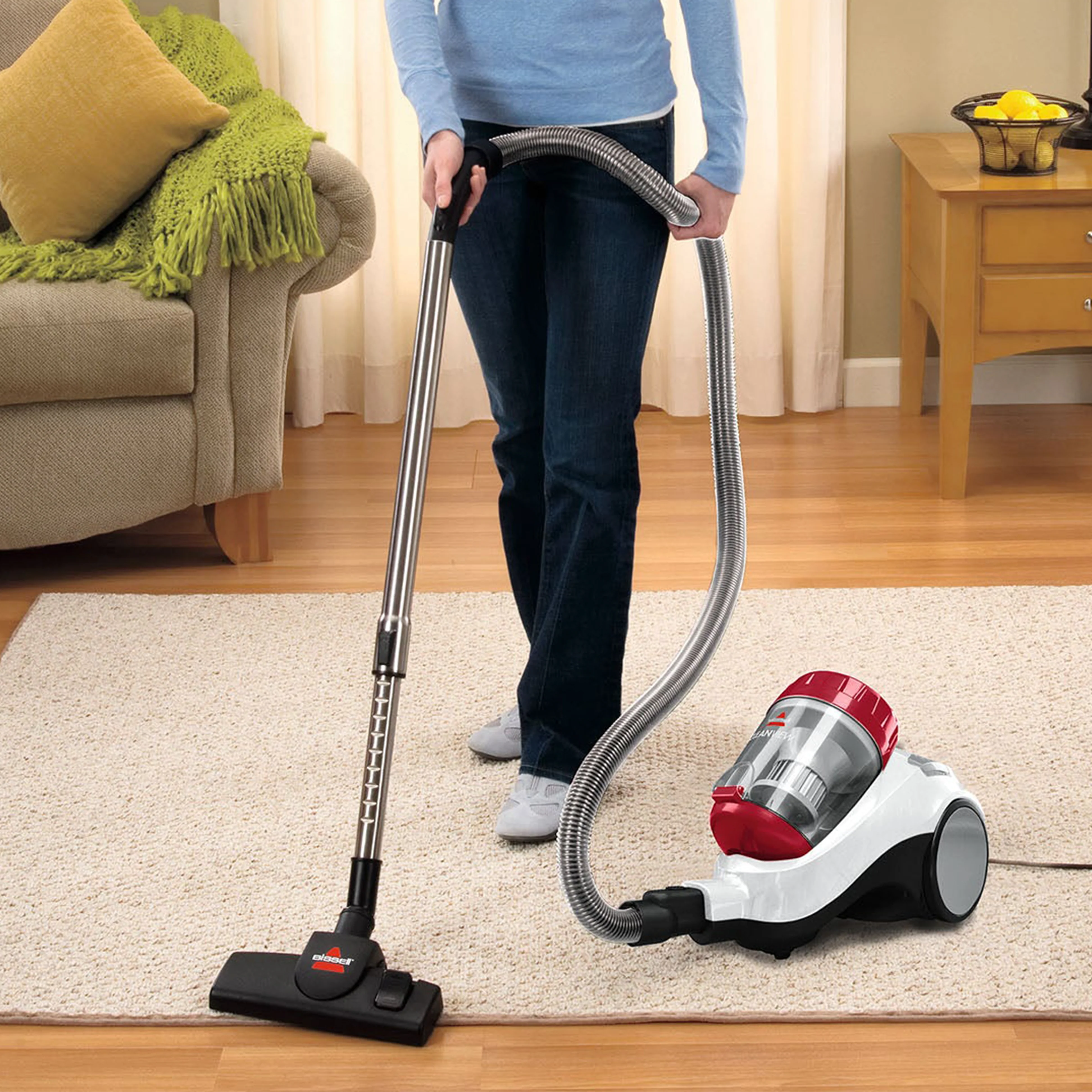 The BISSELL CleanView canister vacuum features multi-cyclonic technology that gives you continuous, powerful suction across both carpets and hard floors.